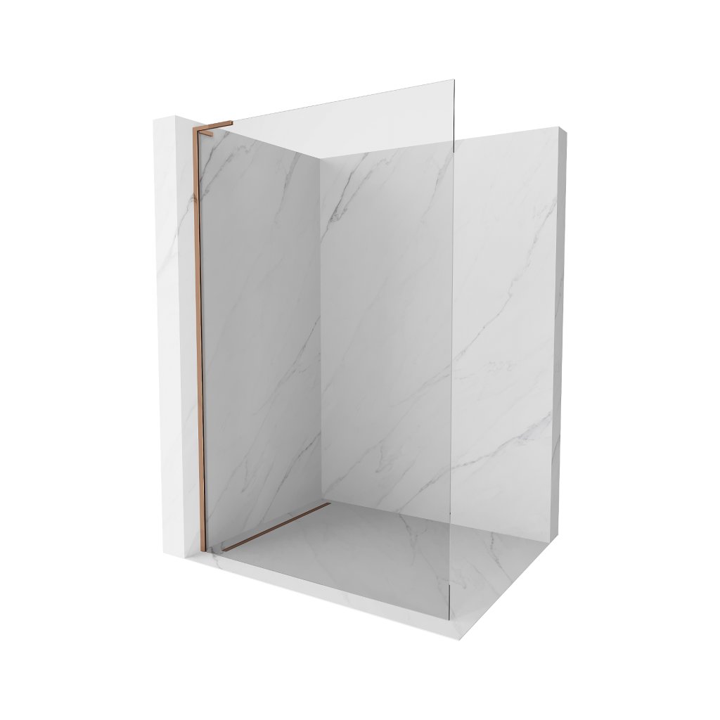 Mexen Kioto L, sprchová zástěna Walk-In 75 x 200 cm, 8mm čiré sklo, růžové zlato profil, 800-075-103-60-00