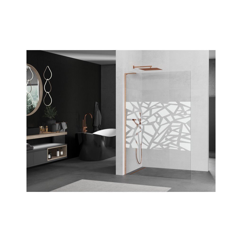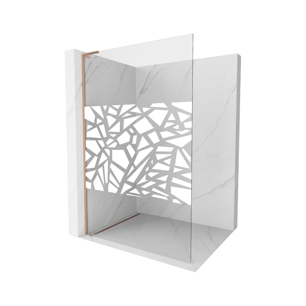 Mexen Kioto L, sprchová zástěna Walk-In 80 x 200 cm, 8mm čiré sklo bílý vzor, měděný matný profil, 800-080-103-65-85