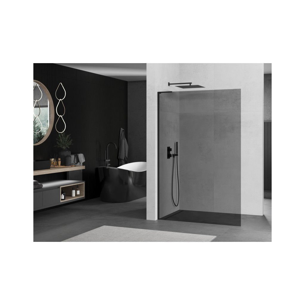 Mexen Kioto L, sprchová zástěna Walk-In 80 x 200 cm, 8mm šedé sklo, černý profil, 800-080-103-70-40