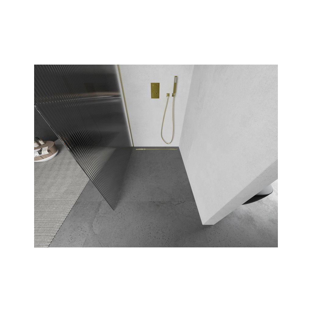 Mexen Kioto L, sprchová zástěna Walk-In 80 x 200 cm, 8mm sklo s žebrovým vzorem, zlatý matný profil, 800-080-103-55-09