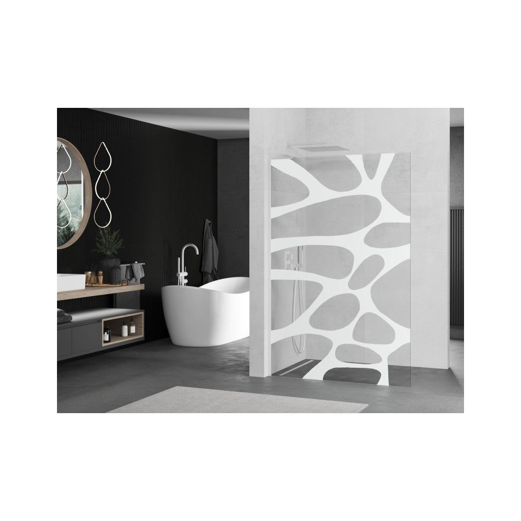 Mexen Kioto L, sprchová zástěna Walk-In 90 x 200 cm, 8mm čiré sklo bílý vzor, bílý profil, 800-090-103-20-97
