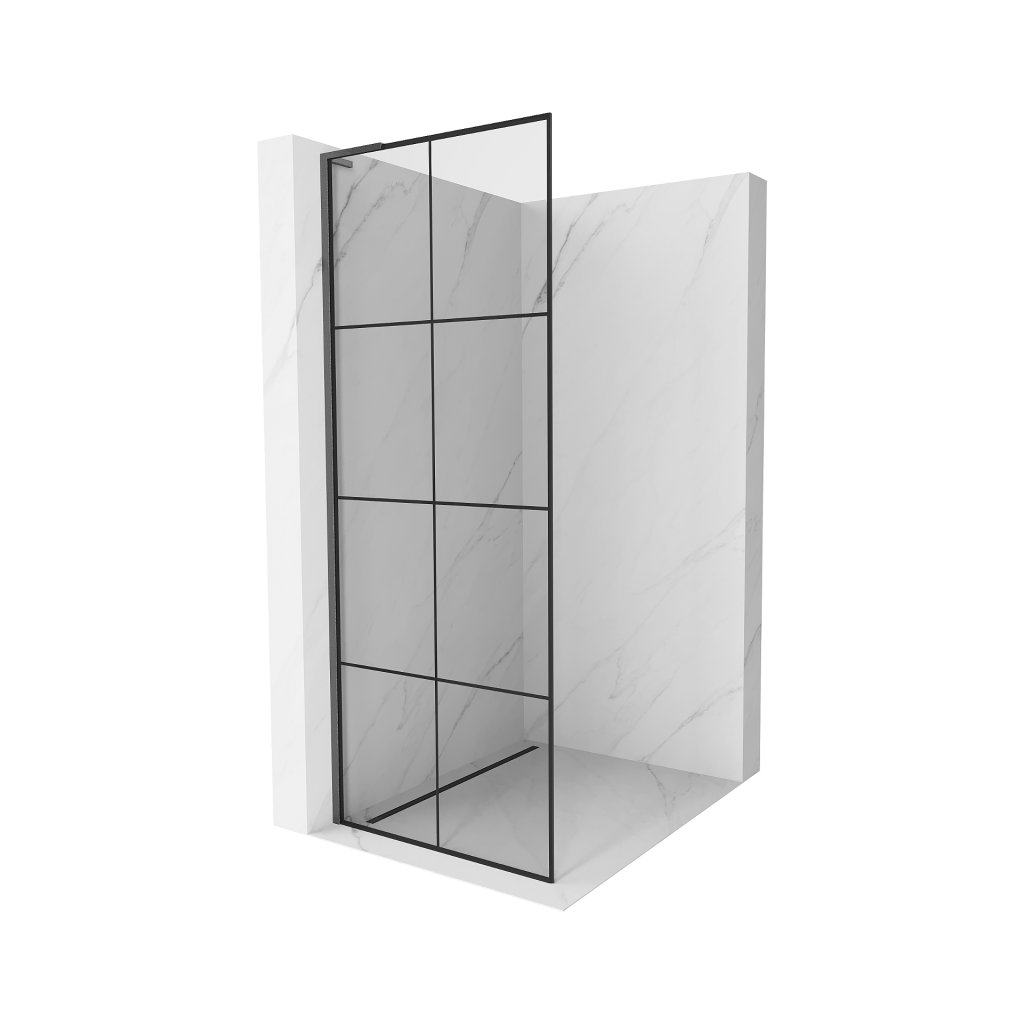 Mexen Kioto L, sprchová zástěna Walk-In 90 x 200 cm, 8mm čiré sklo černý vzor, grafitový profil, 800-090-103-66-77