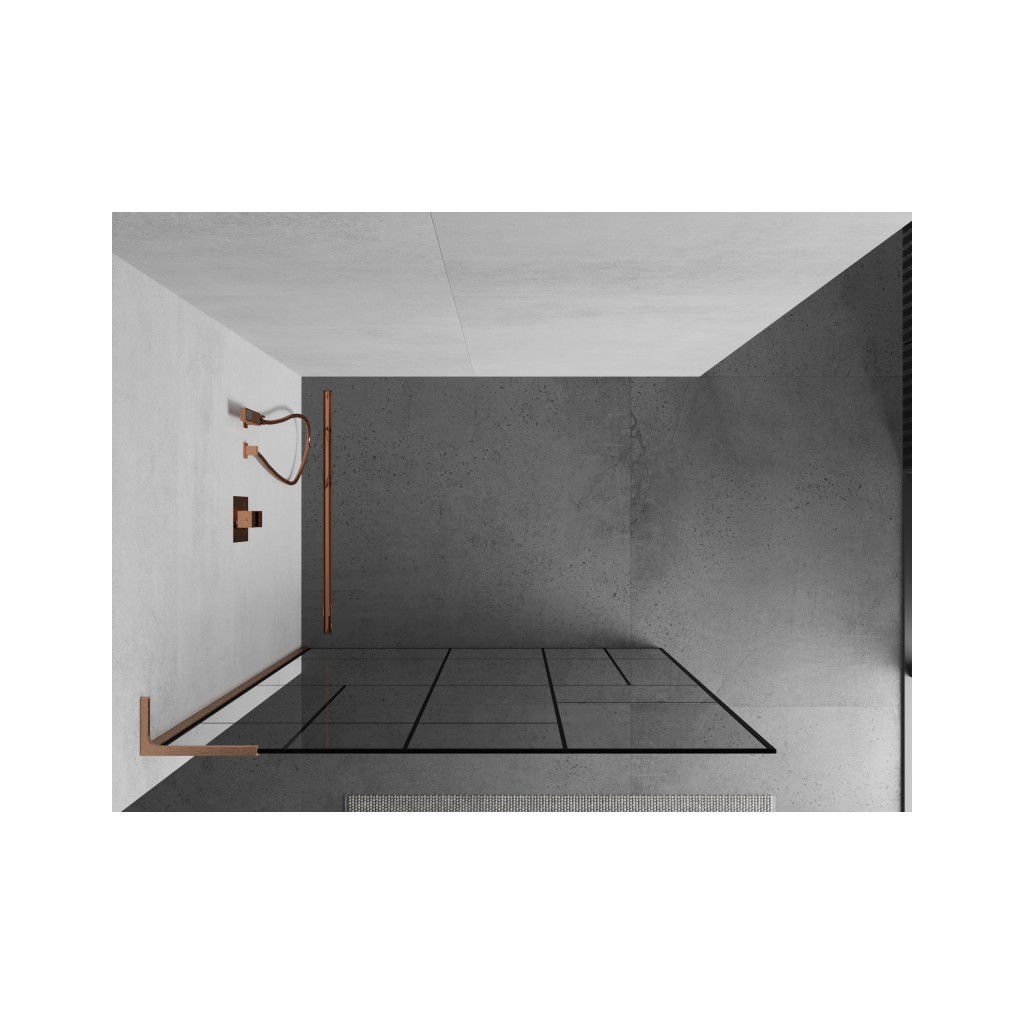 Mexen Kioto L, sprchová zástěna Walk-In 90 x 200 cm, 8mm čiré sklo černý vzor, měděný matný profil, 800-090-103-65-78