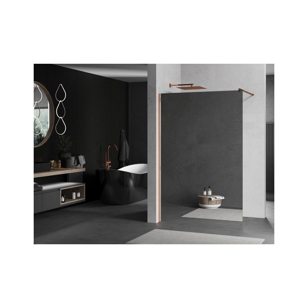 Mexen Kioto sprchová zástěna 100x200 cm 8 mm, profil růžové zlato, sklo efekt zrcadla, 800-100-101-60-50