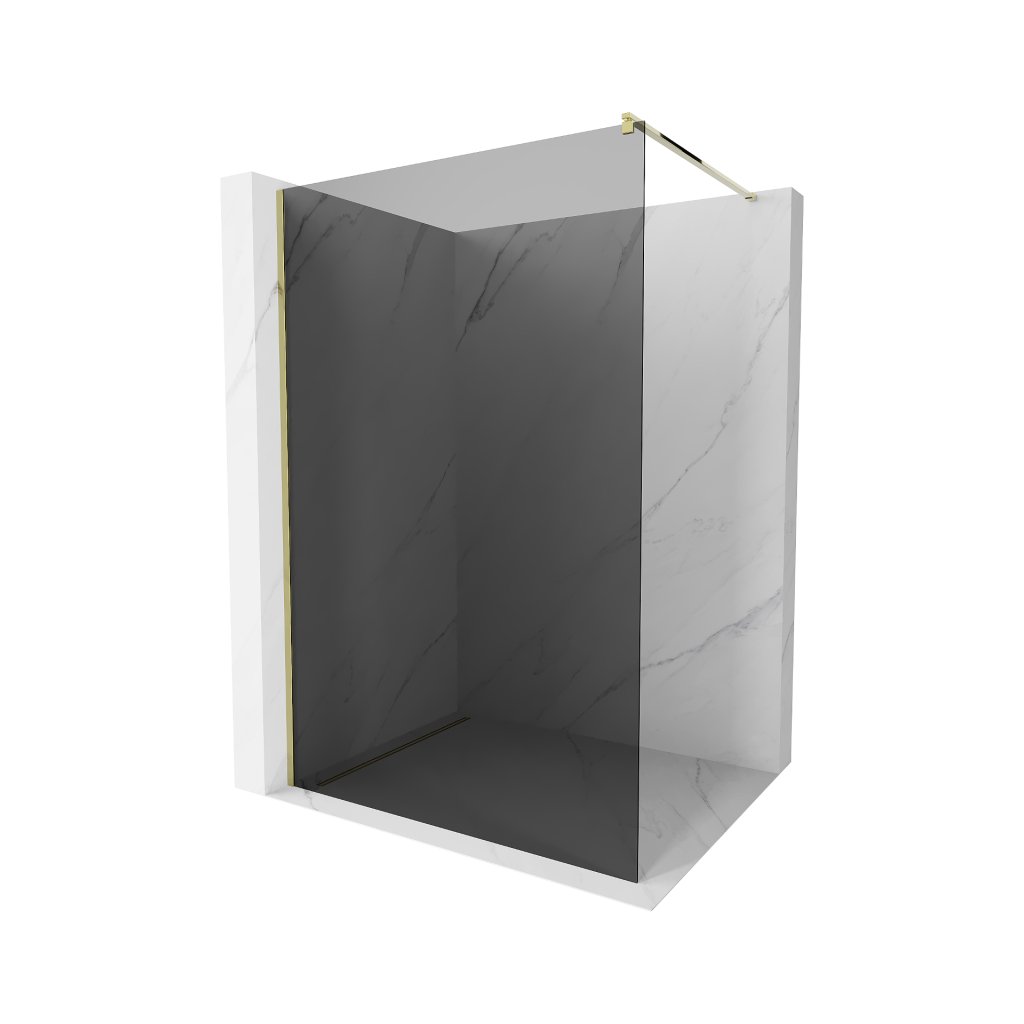 Mexen Kioto sprchová zástěna 130x200 cm 8 mm, zlatý profil, šedé sklo, 800-130-101-50-40