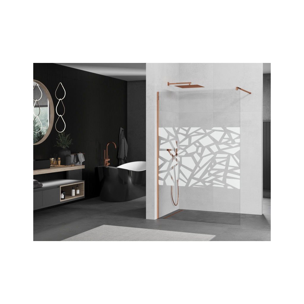 Mexen Kioto sprchová zástěna 80x200 cm 8 mm, růžové zlato, bílý vzor, 800-080-101-60-85