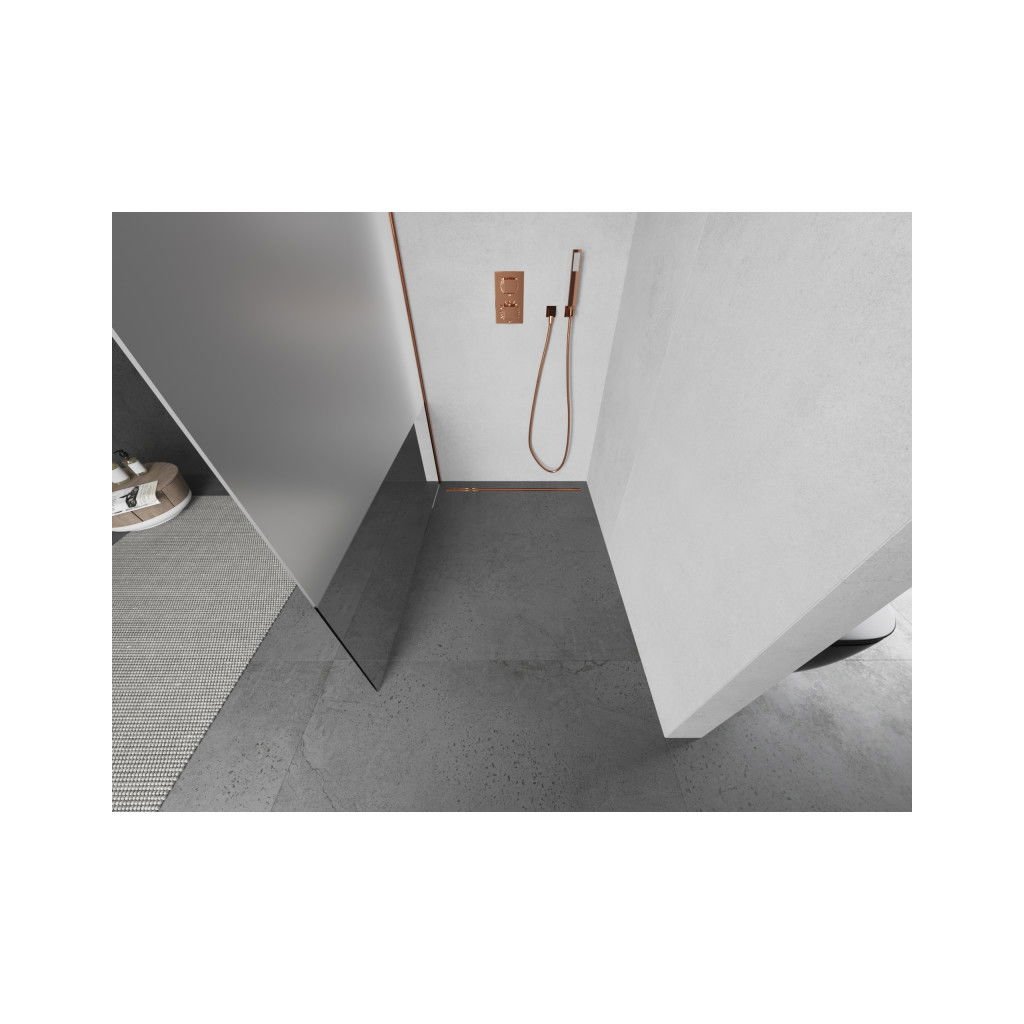 Mexen Kioto sprchová zástěna 90x200 cm 8 mm, profil růžové zlato, čiré sklo-námraza, 800-090-101-01-35