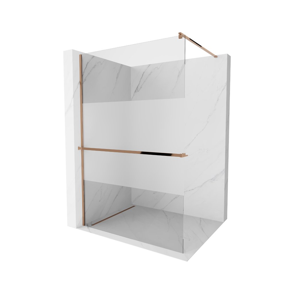 Mexen Kioto+, sprchová zástěna s poličkou a držákem na ručníky 100 x 200 cm, 8mm čiré sklo vzor námraza, profil růžové zlato, 800-100-121-60-35