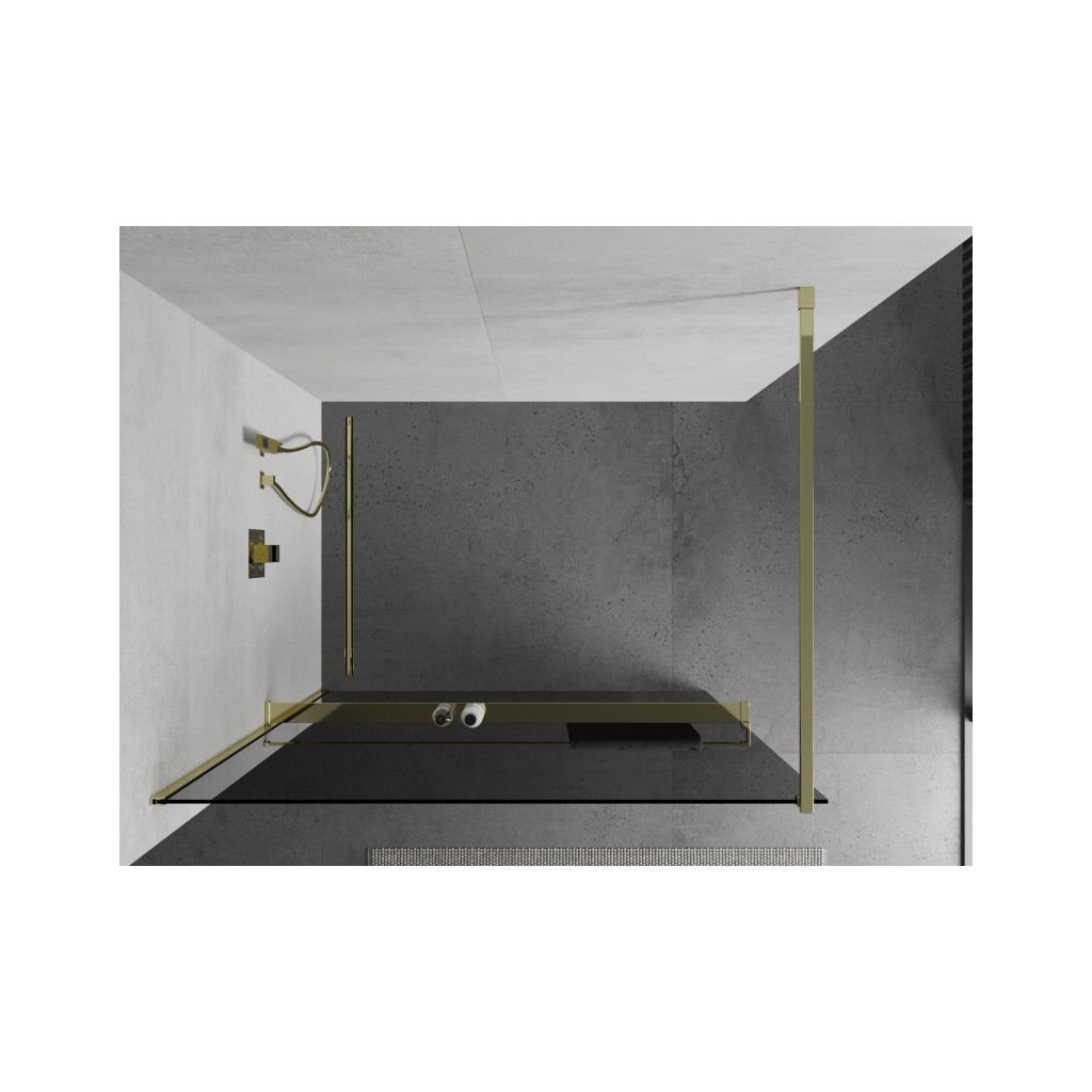 Mexen Kioto+, sprchová zástěna s poličkou a držákem na ručníky 100 x 200 cm, 8mm šedé sklo, zlatý profil, 800-100-121-50-40