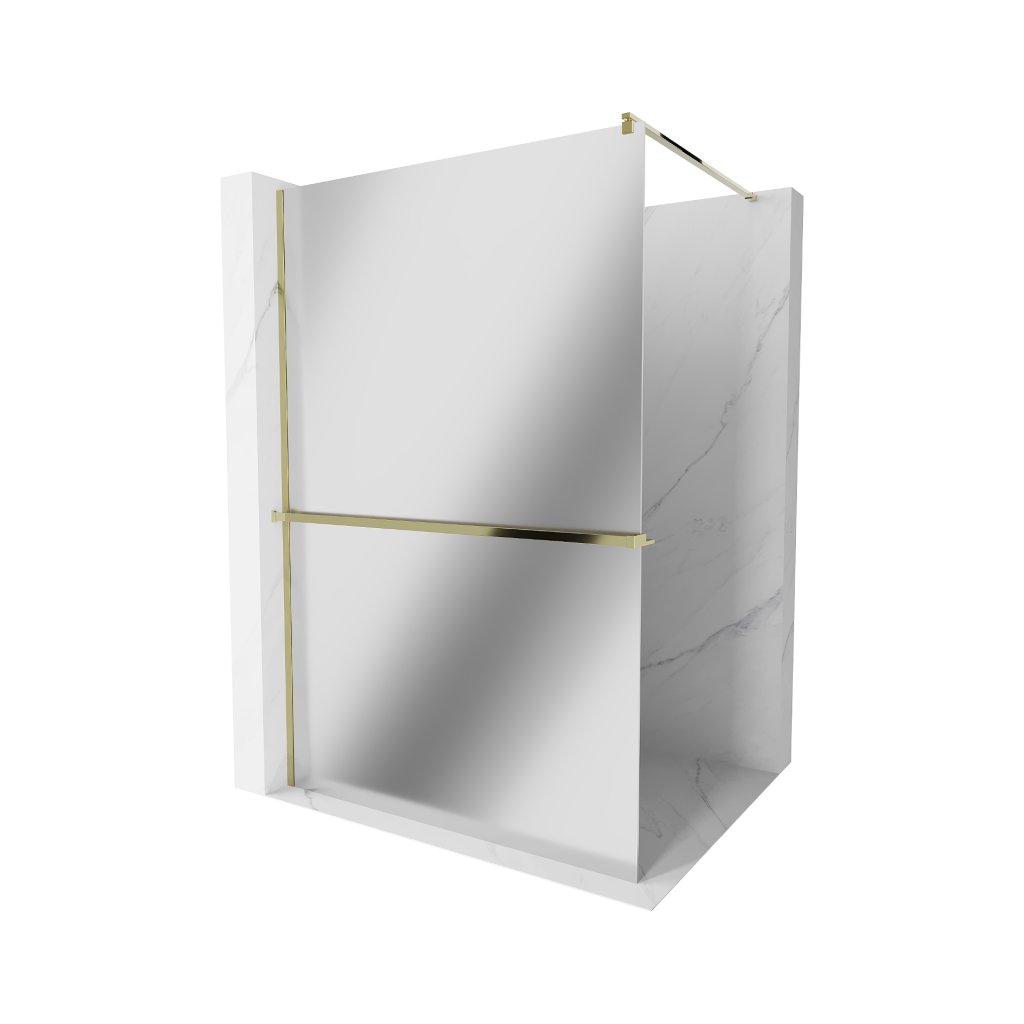 Mexen Kioto+, sprchová zástěna s poličkou a držákem na ručníky 100 x 200 cm, 8mm sklo vzor zrcadlo, zlatý profil, 800-100-121-50-50