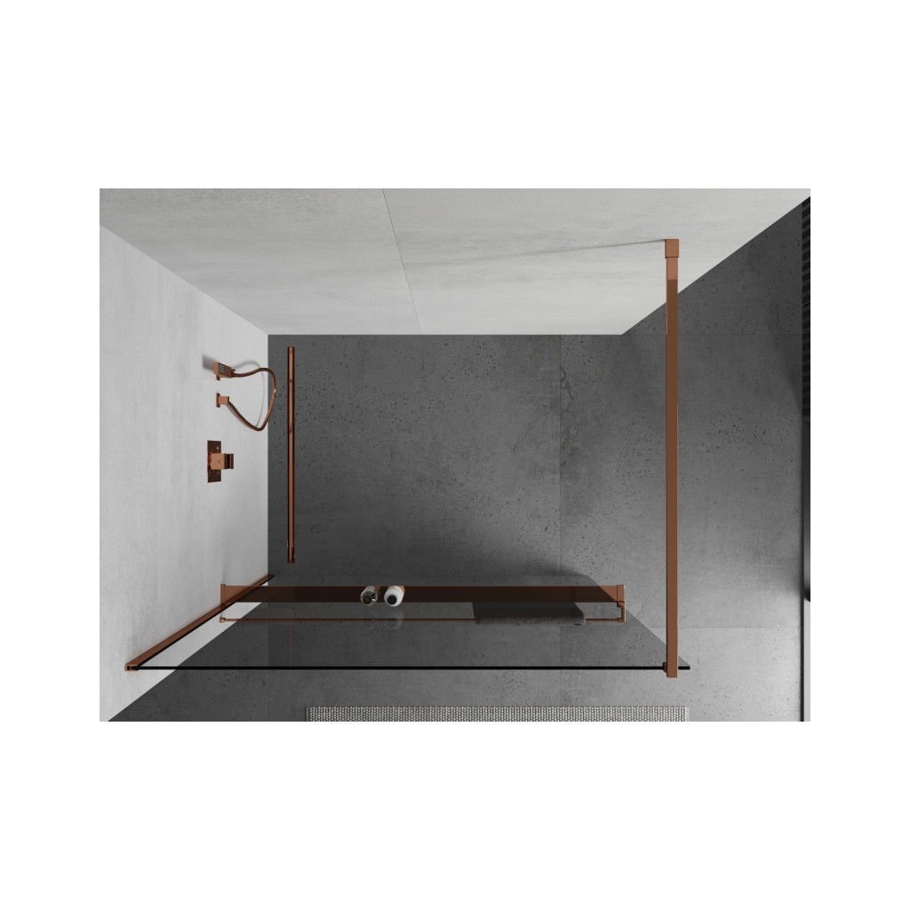 Mexen Kioto+, sprchová zástěna s poličkou a držákem na ručníky 110 x 200 cm, 8mm čiré sklo, profil růžové zlato, 800-110-121-60-00