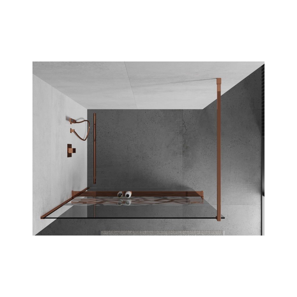 Sprchová zástěna z kolekce Walk-In je univerzálním a oblíbeným řešením pro každou koupelnu. Zástěna je bez dveří a obsahuje tyč, která lze použít k zavěšení závěsu. Zástěna Kioto série je vyrobena z 8mm tvrzeného bezpečnostního skla o výšce 200cm. Instalace je univerzální na sprchovou vaničku nebo dlažbu, vpravo nebo vlevo. Pomocí T-konektoru (není součástí balení) je možné spojení stabilizačních rozpěr a vytvoření otevřeného sprchového koutu v libovolné velikosti (sprchové zástěny Kyoto jsou dostupné v délkách 30-160 cm). Jako minimální šířku vstupu v takovém případě doporučujeme ponechat alespoň 50 cm. Nabízená sprchová zástěna obsahuje designovou kovovou poličku pro zavěšení ručníků zvenčí a umístění sprchového programu uvnitř pro pohodlnou sprchu.