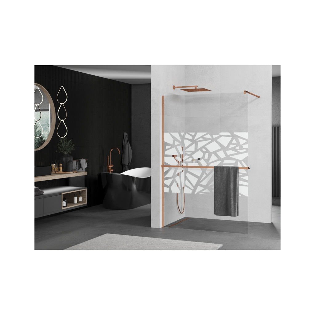 Mexen Kioto+, sprchová zástěna s poličkou a držákem na ručníky 80 x 200 cm, 8mm čiré sklo vzor bílý, profil růžové zlato, 800-080-121-60-85