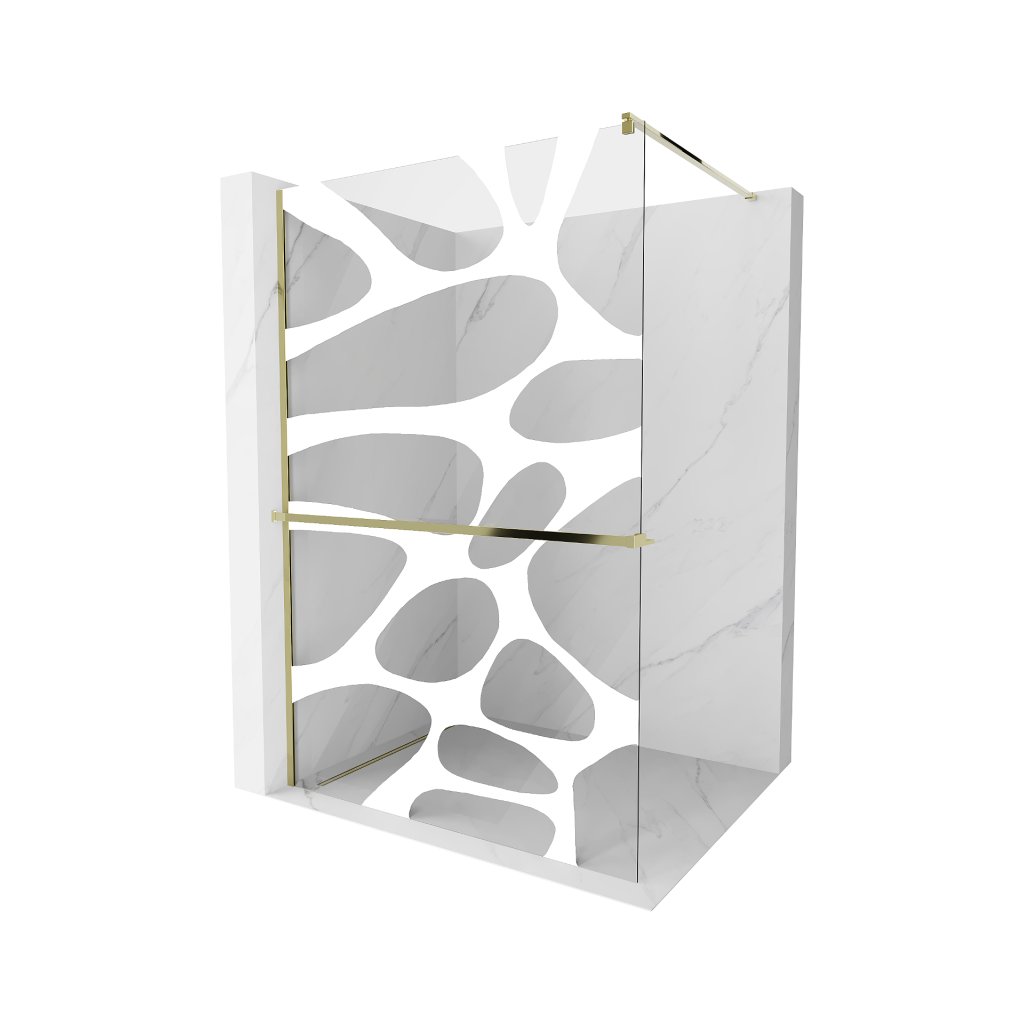 Mexen Kioto+, sprchová zástěna s poličkou a držákem na ručníky 80 x 200 cm, 8mm čiré sklo vzor bílý, zlatý profil 800-080-121-50-97