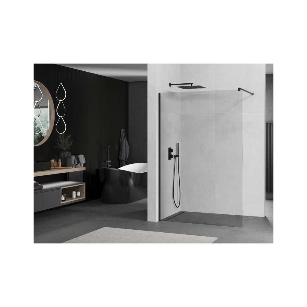 Mexen KIOTO sprchová zástěna WALK-IN 8mm, 120x200 cm, čiré sklo / černý profil, 800-120-101-70-00