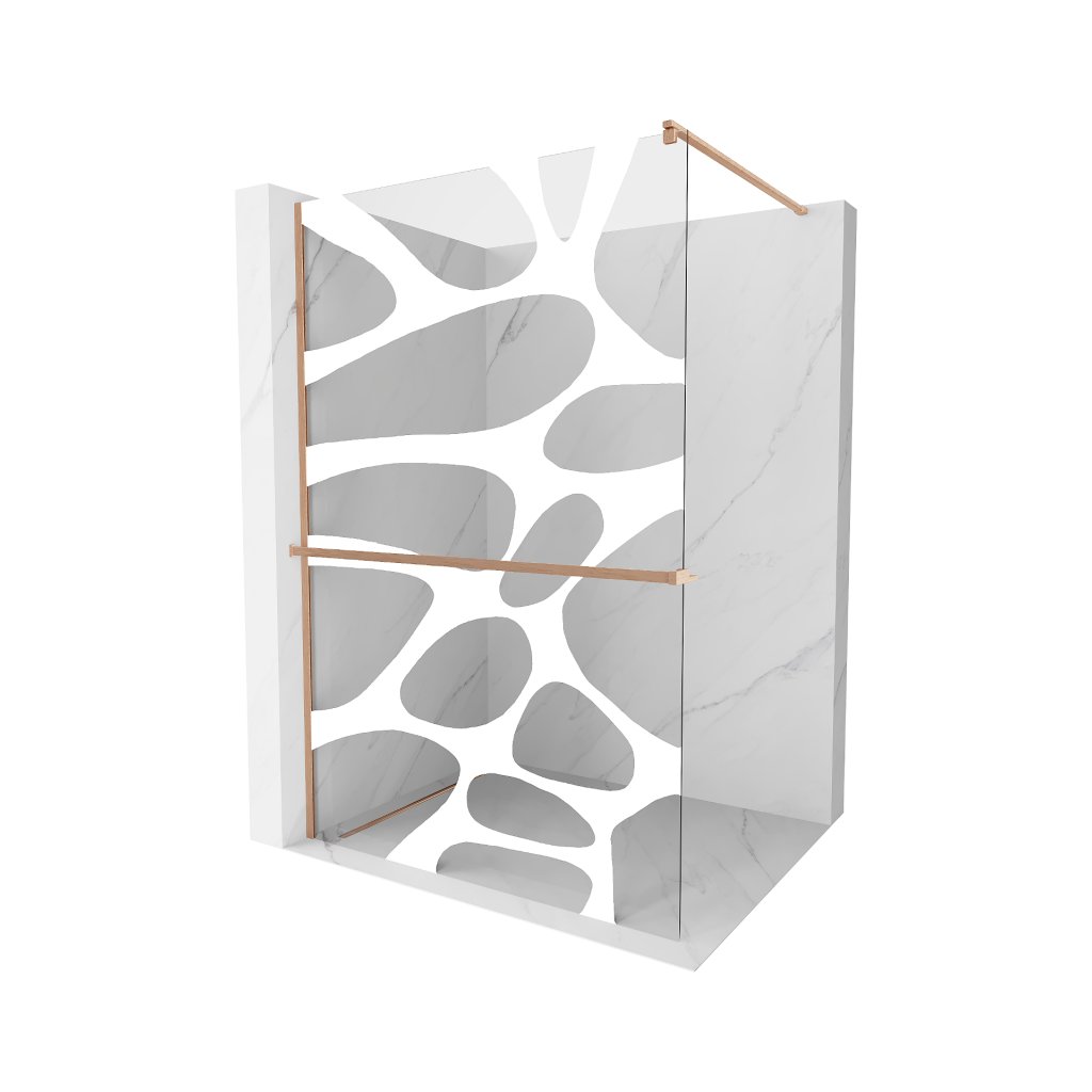 Mexen Kioto+, sprchová zástěna Walk-In s poličkou a věšákem 100 x 200 cm, 8mm čiré sklo bílý vzor, měděný matný profil, 800-100-121-65-97