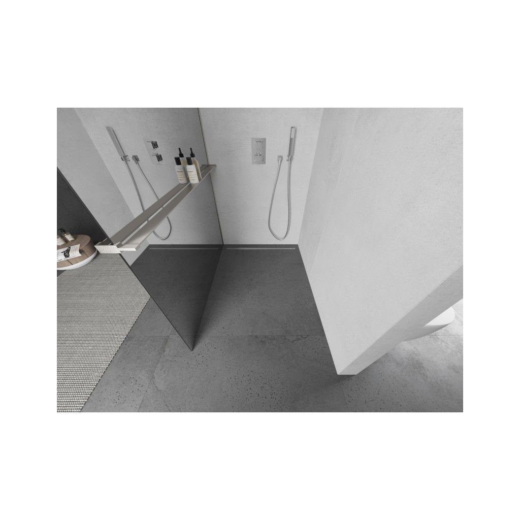 Mexen Kioto+, sprchová zástěna Walk-In s poličkou a věšákem 100 x 200 cm, 8mm sklo vzor zrcadlo, broušená ocel profil, 800-100-121-97-50