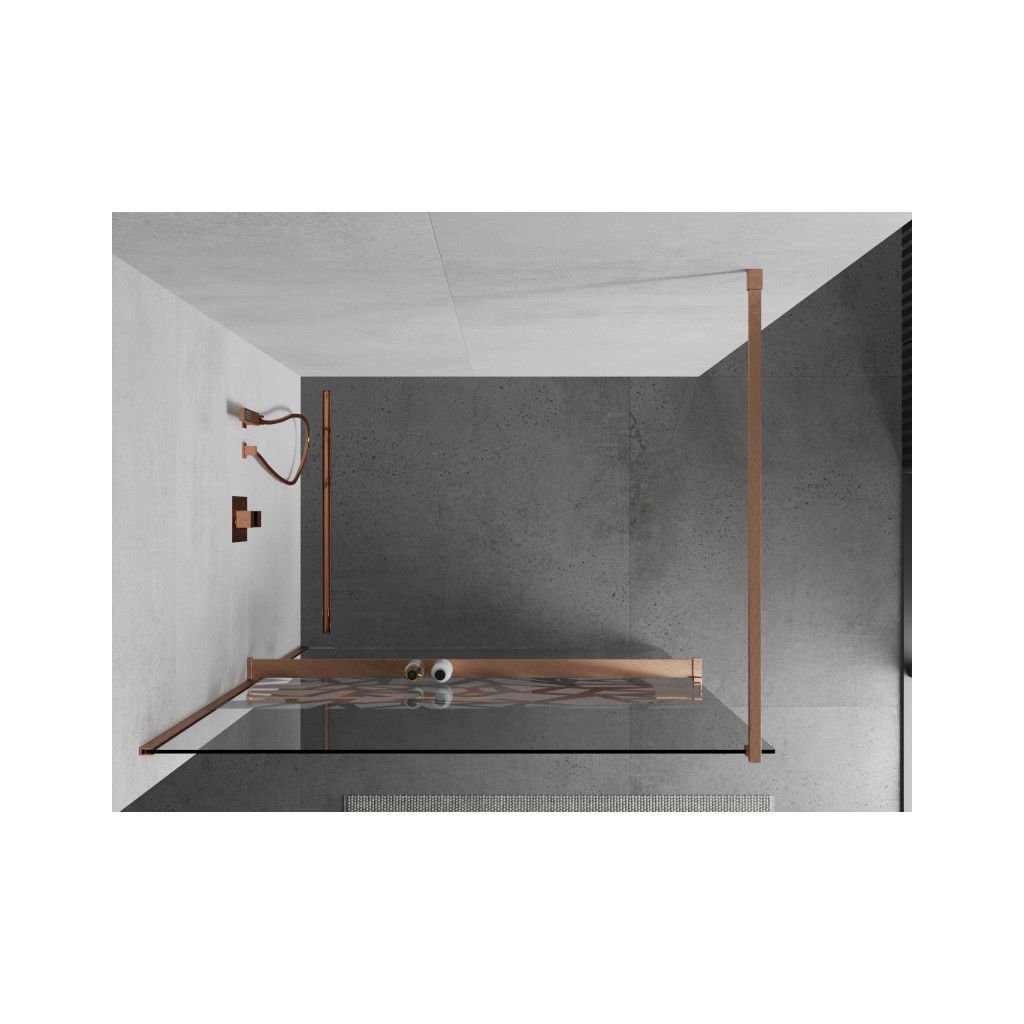 Mexen Kioto+, sprchová zástěna Walk-In s poličkou a věšákem 110 x 200 cm, 8mm čiré sklo bílý vzor, měděný matný profil, 800-110-121-65-85