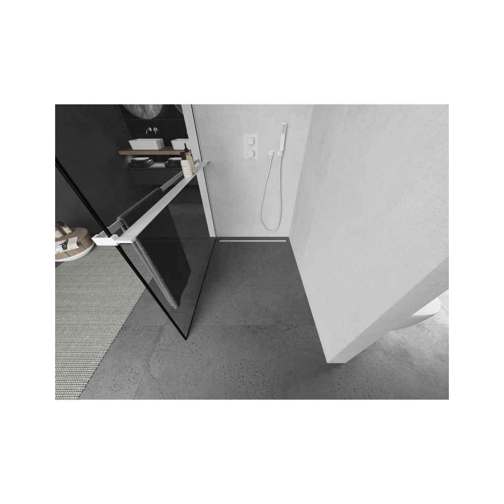 Mexen Kioto+, sprchová zástěna Walk-In s poličkou a věšákem 110 x 200 cm, 8mm čiré sklo černý vzor, bílý profil, 800-110-121-20-70