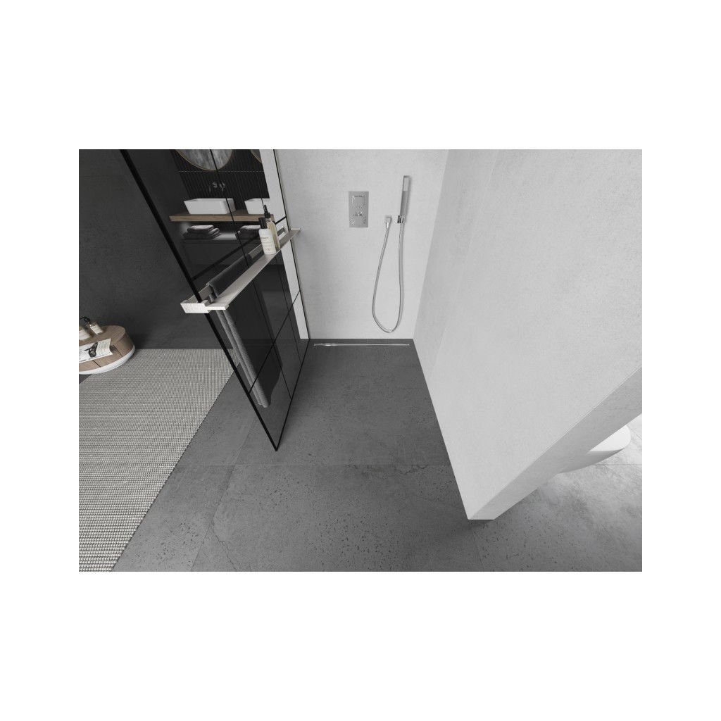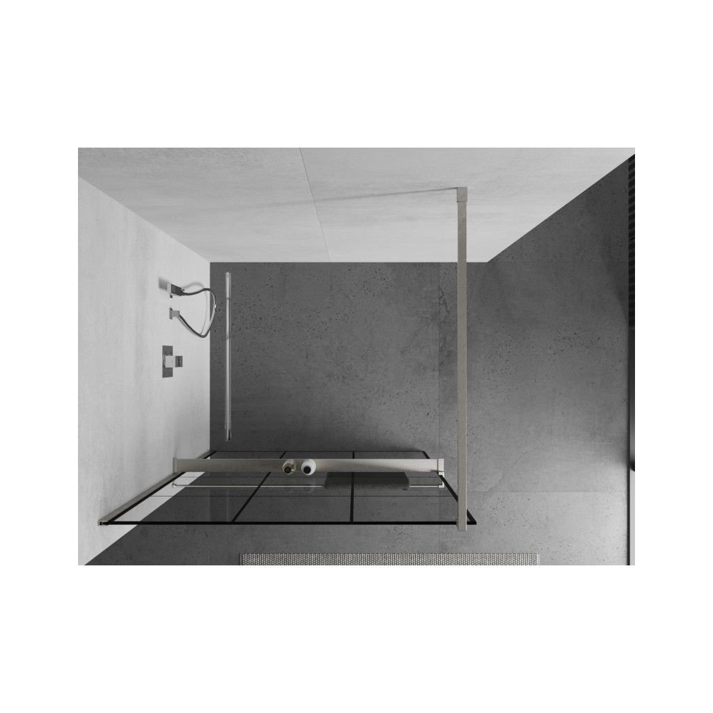 Mexen Kioto+, sprchová zástěna Walk-In s poličkou a věšákem 110 x 200 cm, 8mm čiré sklo černý vzor, broušená ocel profil, 800-110-121-97-77