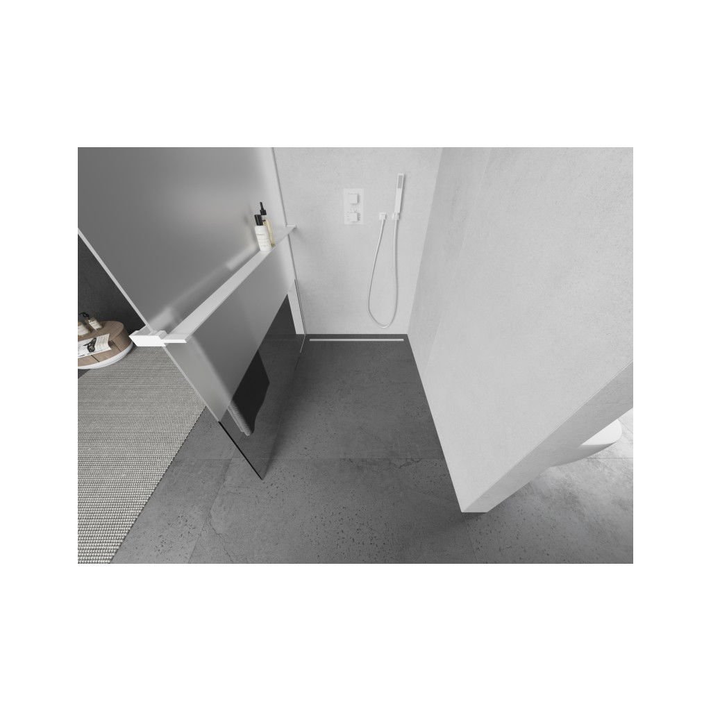 Mexen Kioto+, sprchová zástěna Walk-In s poličkou a věšákem 110 x 200 cm, 8mm čiré sklo-námraza, bílý profil, 800-110-121-20-35