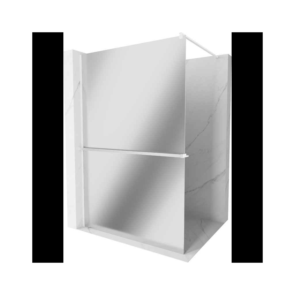 Mexen Kioto+, sprchová zástěna Walk-In s poličkou a věšákem 110 x 200 cm, 8mm sklo vzor zrcadlo, bílý profil, 800-110-121-20-50