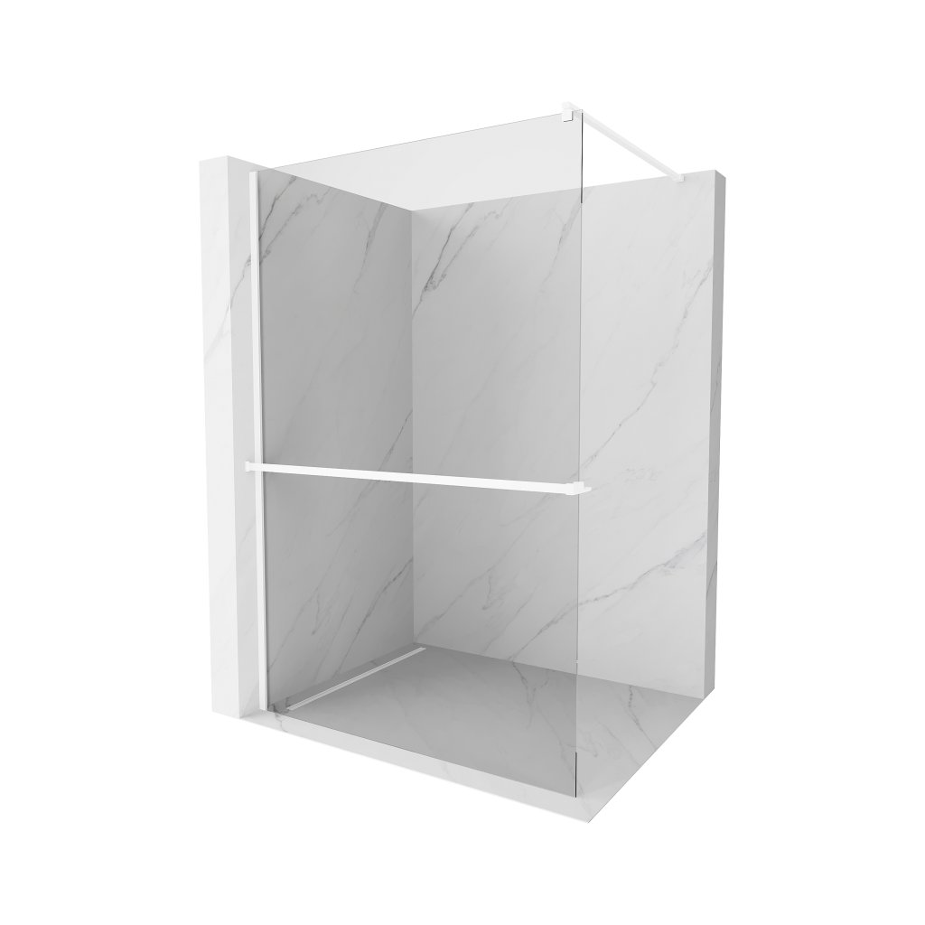 Mexen Kioto+, sprchová zástěna Walk-In s poličkou a věšákem 115 x 200 cm, 8mm čiré sklo, bílý profil, 800-115-121-20-00