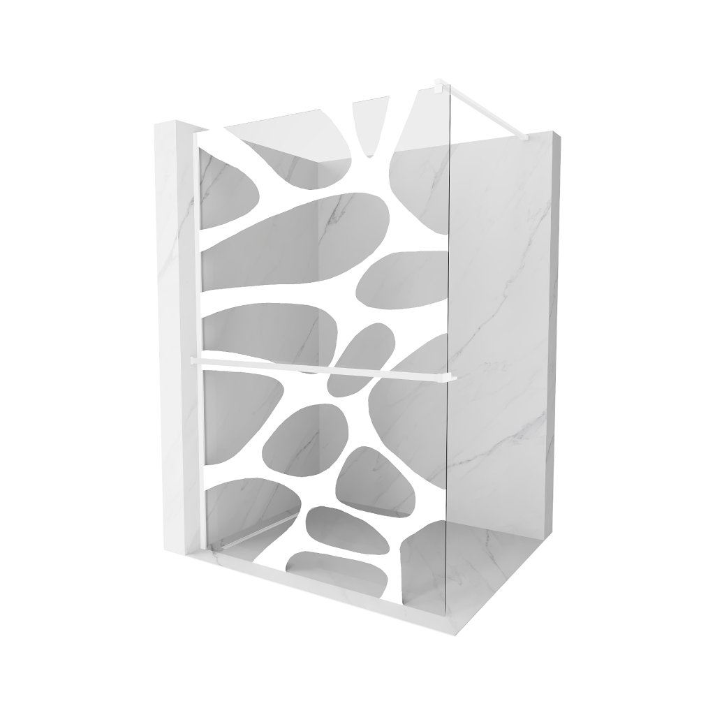 Mexen Kioto+, sprchová zástěna Walk-In s poličkou a věšákem 120 x 200 cm, 8mm čiré sklo bílý vzor, bílý profil, 800-120-121-20-97