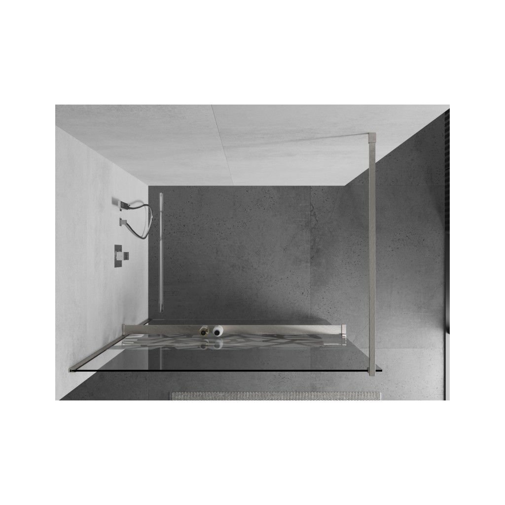 Mexen Kioto+, sprchová zástěna Walk-In s poličkou a věšákem 120 x 200 cm, 8mm čiré sklo bílý vzor, broušená ocel profil, 800-120-121-97-85