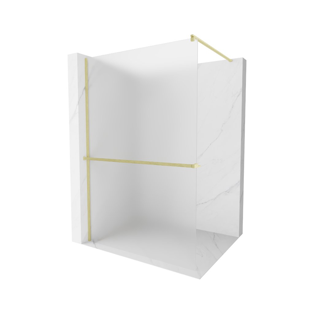Mexen Kioto+, sprchová zástěna Walk-In s poličkou a věšákem 120 x 200 cm, 8mm sklo námraza, zlatý matný profil, 800-120-121-55-30