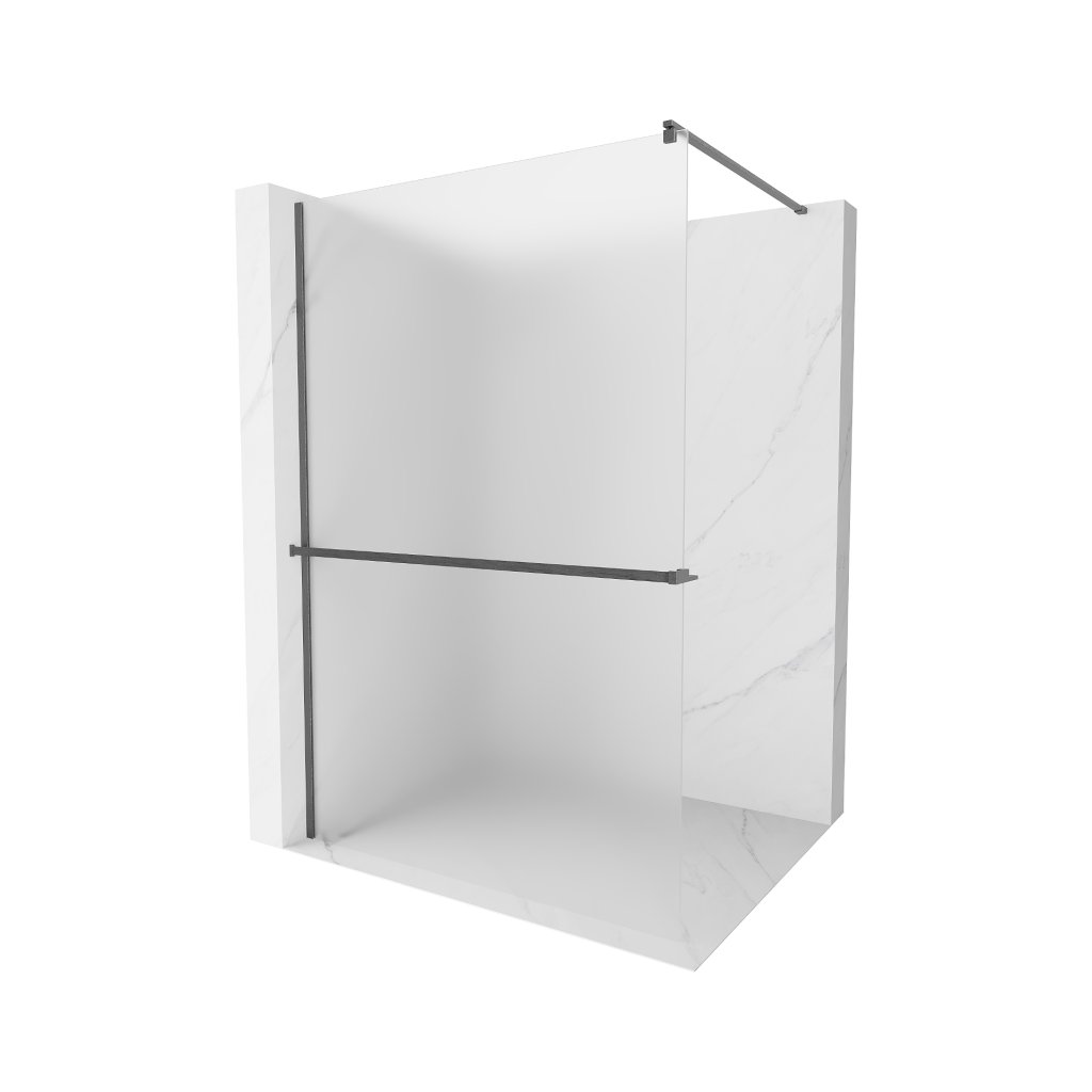 Mexen Kioto+, sprchová zástěna Walk-In s poličkou a věšákem 130 x 200 cm, 8mm sklo námraza, grafitový profil, 800-130-121-66-30
