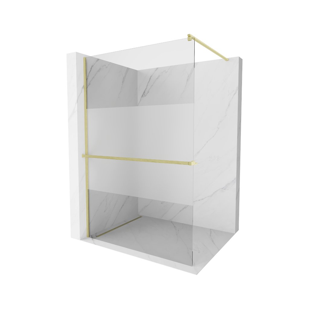 Mexen Kioto+, sprchová zástěna Walk-In s poličkou a věšákem 70 x 200 cm, 8mm čiré sklo-námraza, zlatý matný profil, 800-070-121-55-35