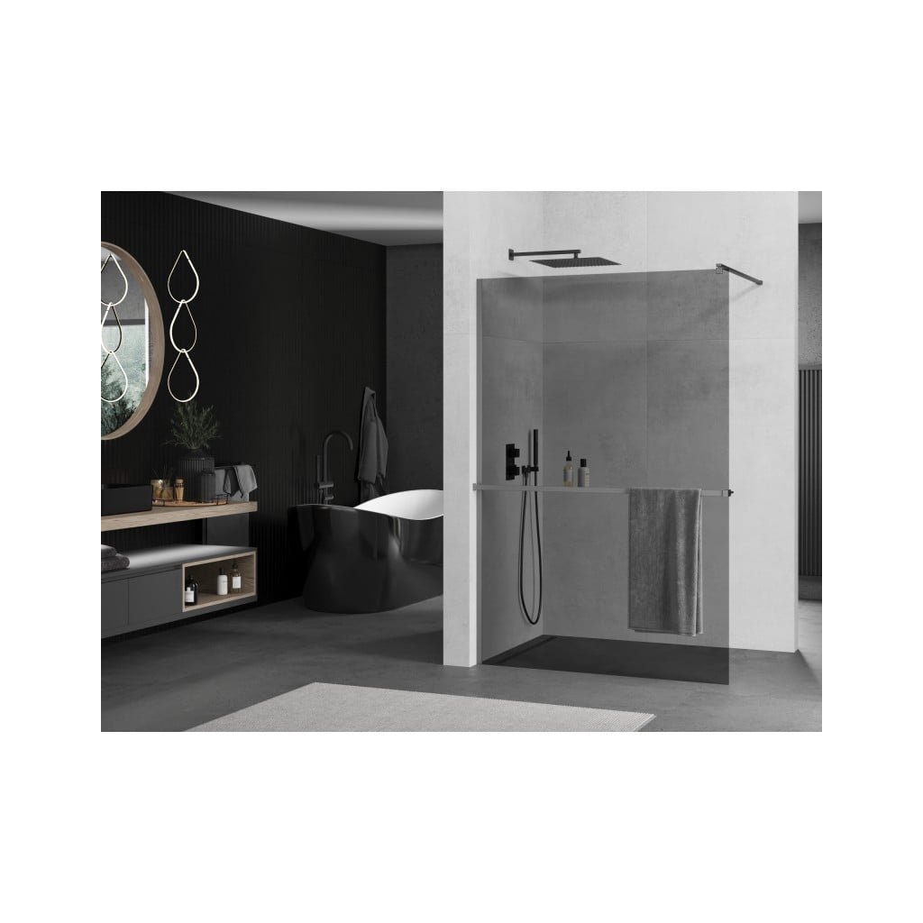 Mexen Kioto+, sprchová zástěna Walk-In s poličkou a věšákem 70 x 200 cm, 8mm šedé sklo, grafitový profil, 800-070-121-95-40