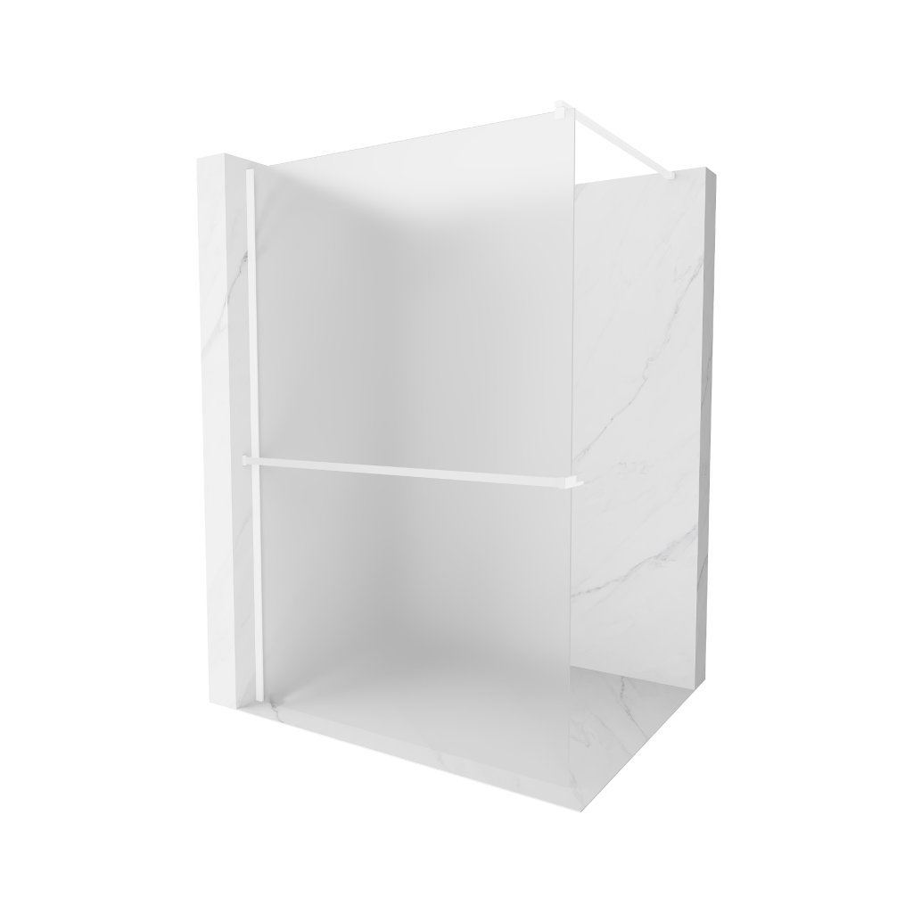 Mexen Kioto+, sprchová zástěna Walk-In s poličkou a věšákem 70 x 200 cm, 8mm sklo námraza, bílý profil, 800-070-121-20-30