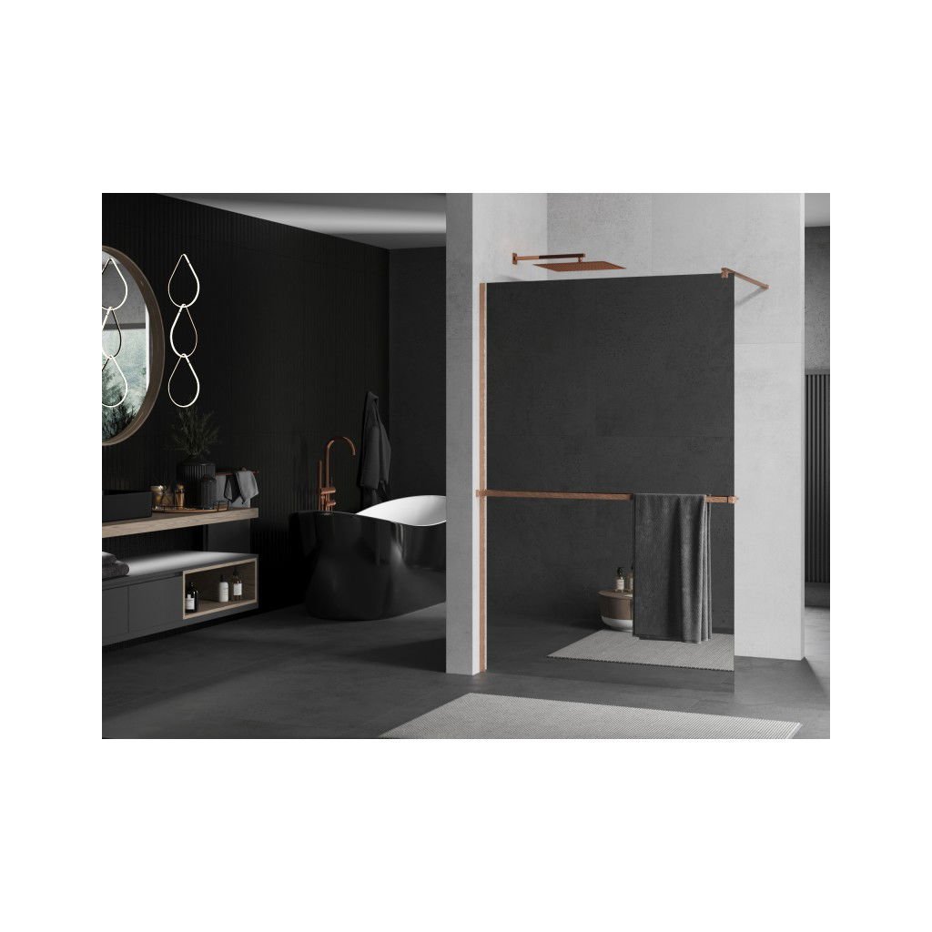 Mexen Kioto+, sprchová zástěna Walk-In s poličkou a věšákem 80 x 200 cm, 8mm sklo vzor zrcadlo, měděný matný profil, 800-080-121-65-50