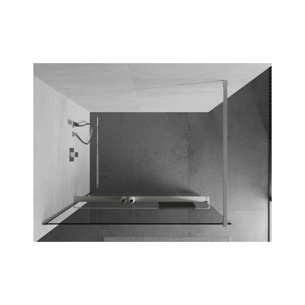 Mexen Kioto+, sprchová zástěna Walk-In s poličkou a věšákem 95 x 200 cm, 8mm čiré sklo, broušená ocel profil, 800-095-121-97-00
