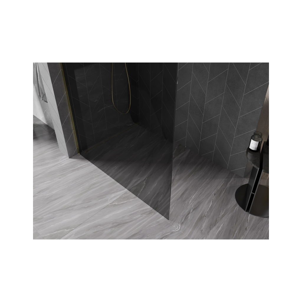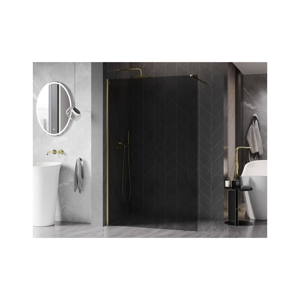 Mexen Kioto-X, sprchová zástěna 140 x 200 cm, 10mm šedé sklo, zlatý lesklý profil, 800-140-101-50-40-X