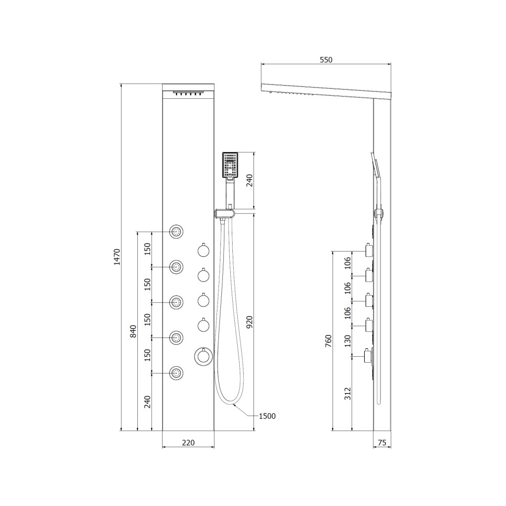 Mexen Lando, sprchový panel, černá, 7611-04-70
