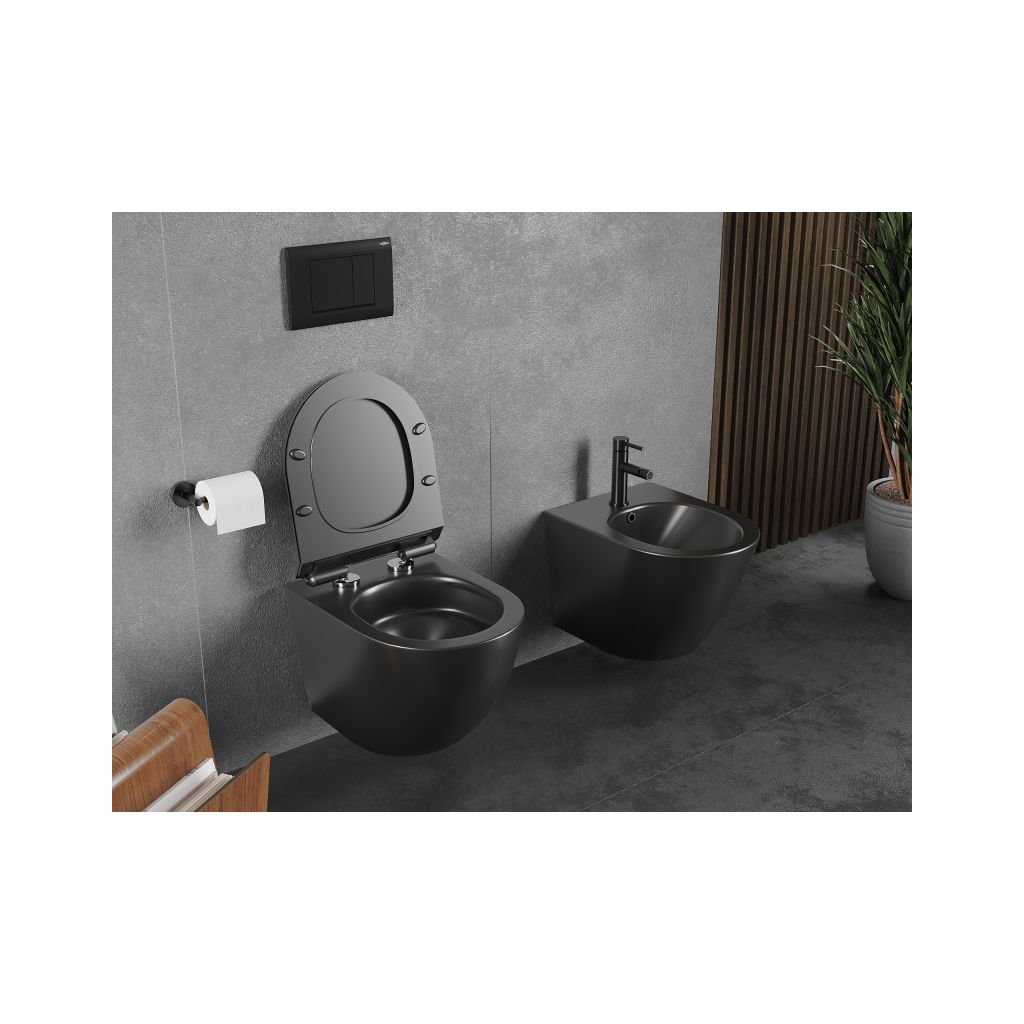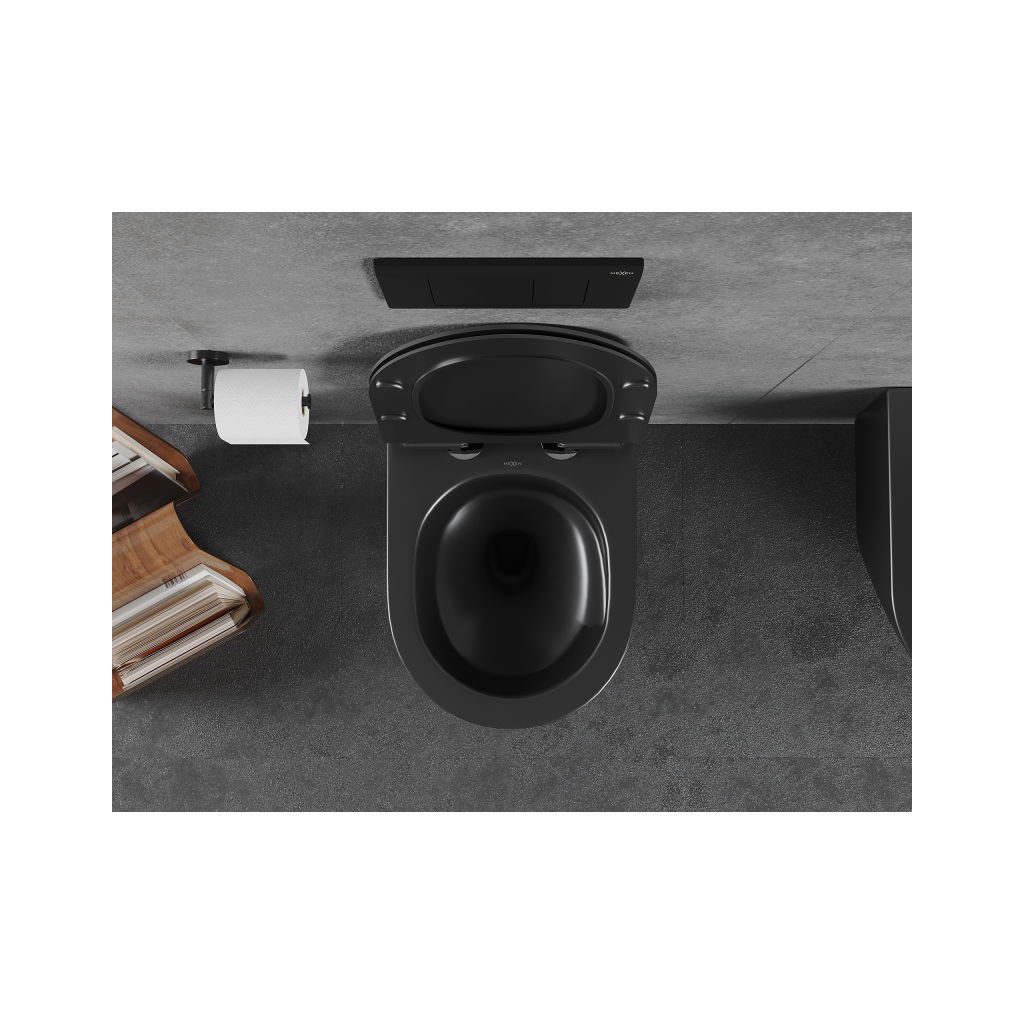 Mexen Lena, závěsná WC mísa 490x360x340 mm, Rimless Tornádo + WC sedátko z duroplastu, černá matná, 30220185T