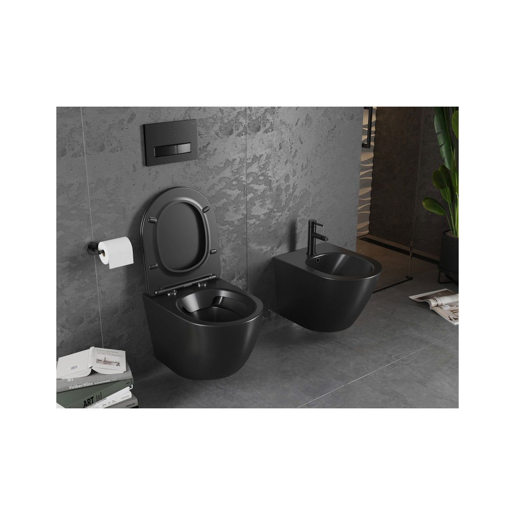 Mexen Lena Rimless závěsné WC se sedátkem s pomalým zavíráním, černá matná - 30221085