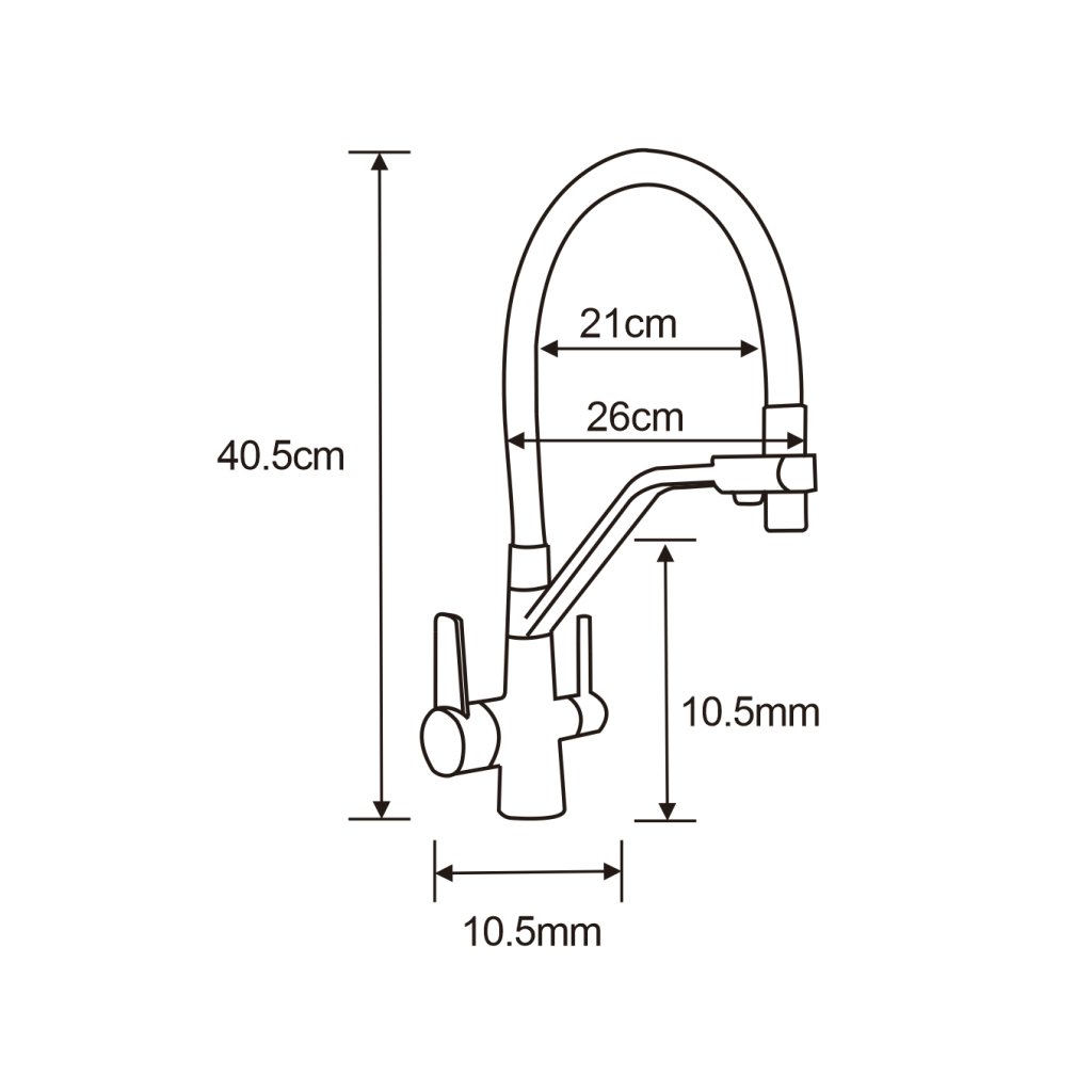 - Typ: dřezová, dvě rukojeti, druhý výtok pro filtrovanou pitnou vodu