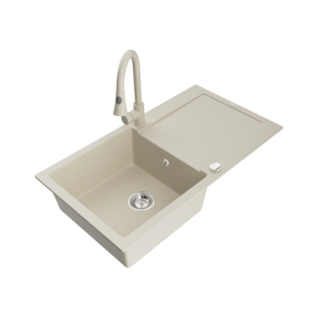 Mexen Leo, 1-komorový granitový dřez 900x500x190 mm a dřezová baterie Elia, béžová, 6501-69-670101-69