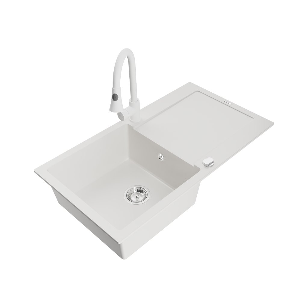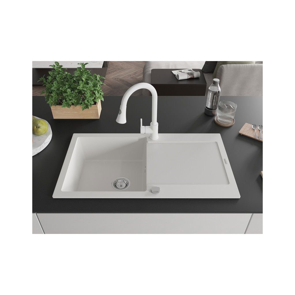 Mexen Leo, 1-komorový granitový dřez 900x500x190 mm a dřezová baterie Elia, bílá, 6501-20-670101-20
