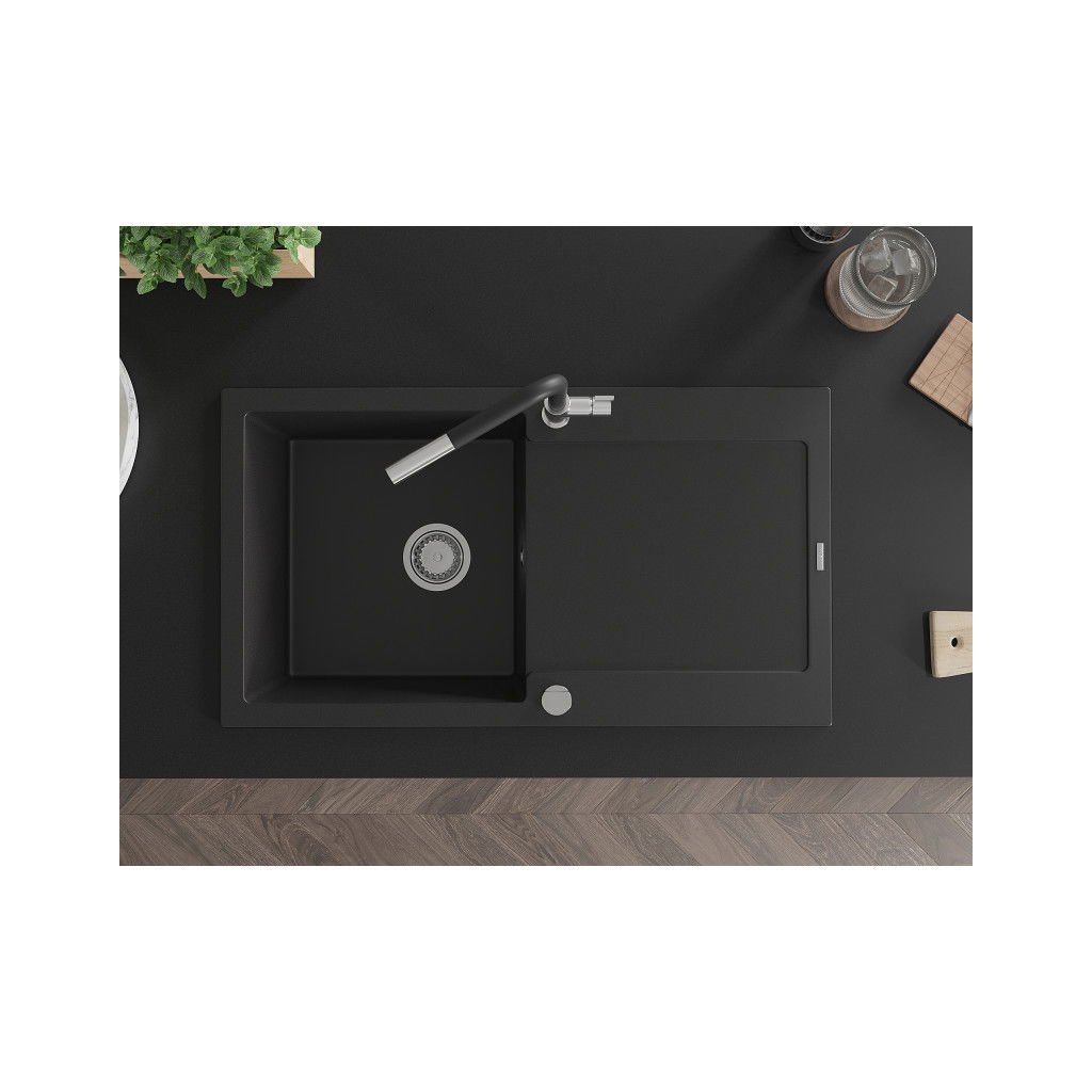 Mexen Leo, 1-komorový granitový dřez 900x500x190 mm a dřezová baterie Flora, černá, 6501-77-670401-07