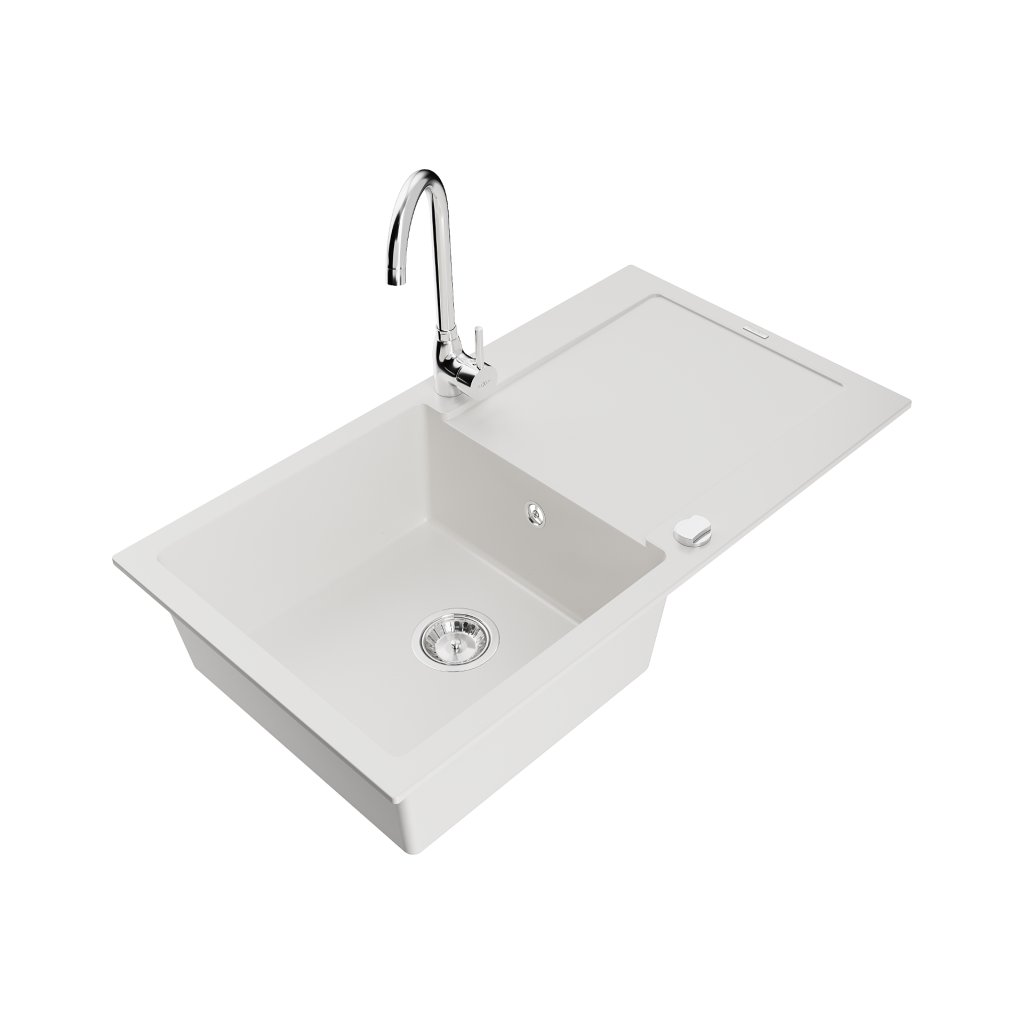 Mexen Leo, 1-komorový granitový dřez s odkapávačem 90x50 cm a kuchyňskou baterií Telma, bílá, 6501-20-670200-00