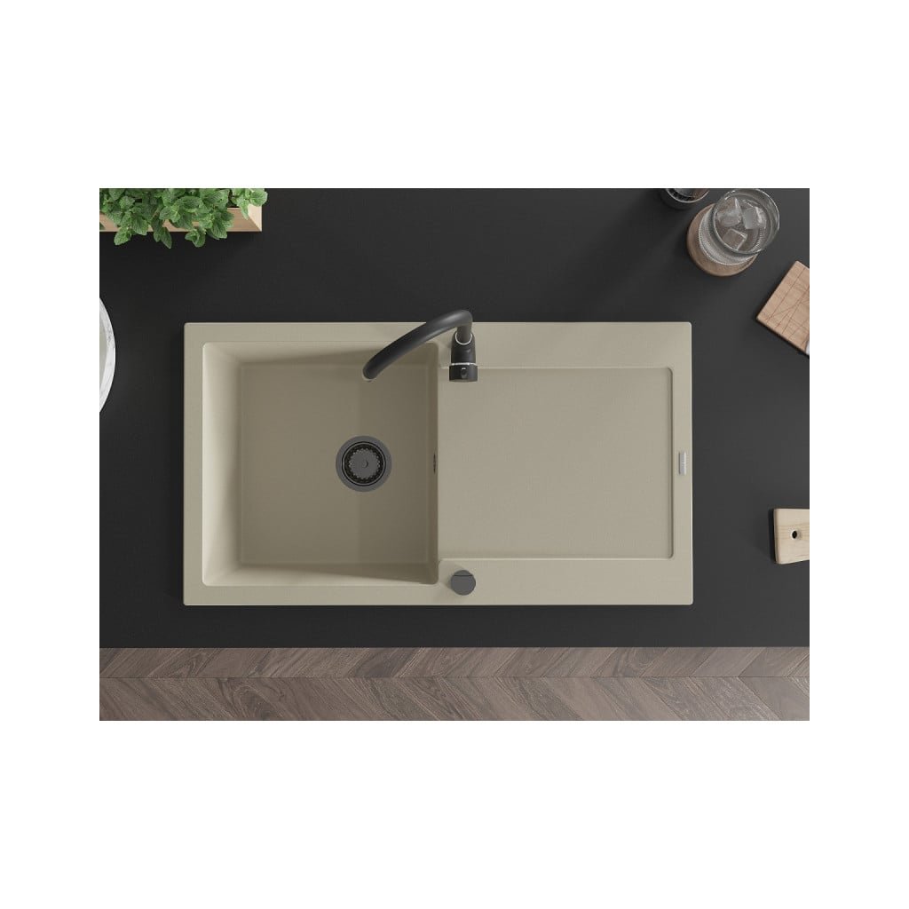 Mexen Leo, dřez granitový 900x500x190 mm, 1-komorový, béžová s černým sifonem, 6501901010-69-B