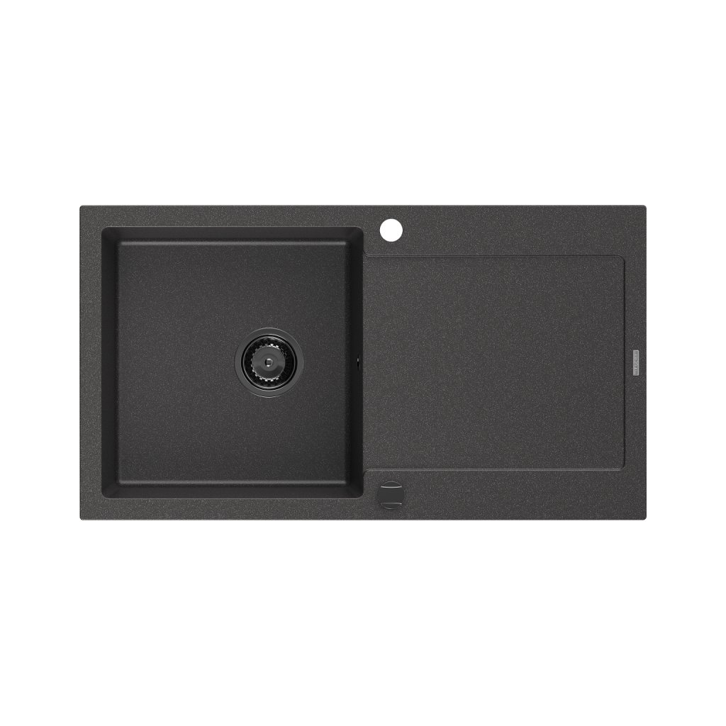 Mexen Leo, dřez granitový 900x500x190 mm, 1-komorový, černá skvrnitá s černý sifonem, 6501901010-76-B