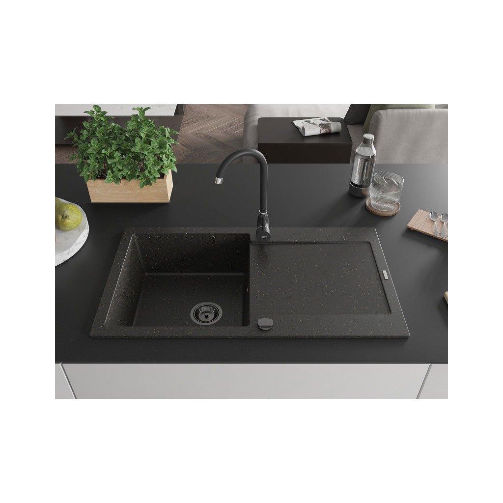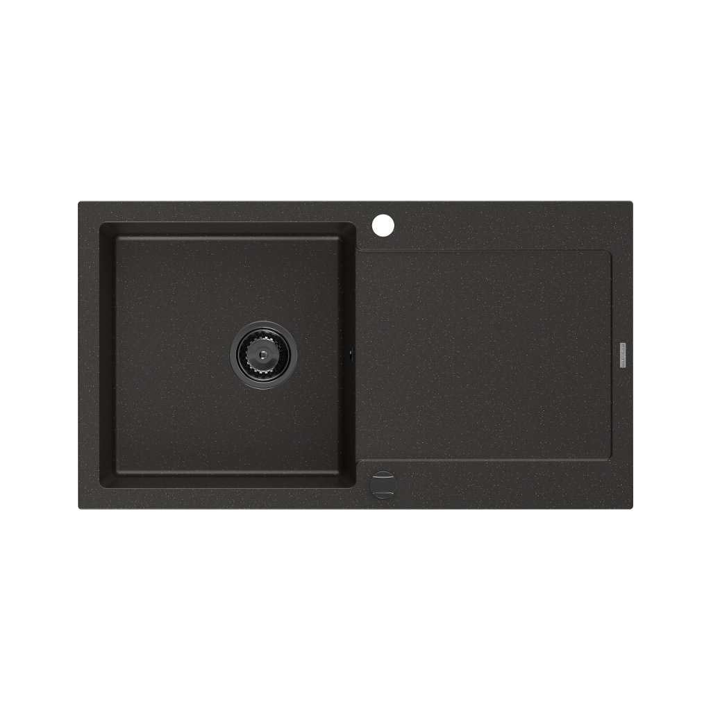 Mexen Leo, dřez granitový 900x500x190 mm, 1-komorový, černá-zlatá metalíza s černým sifonem, 6501901010-75-B