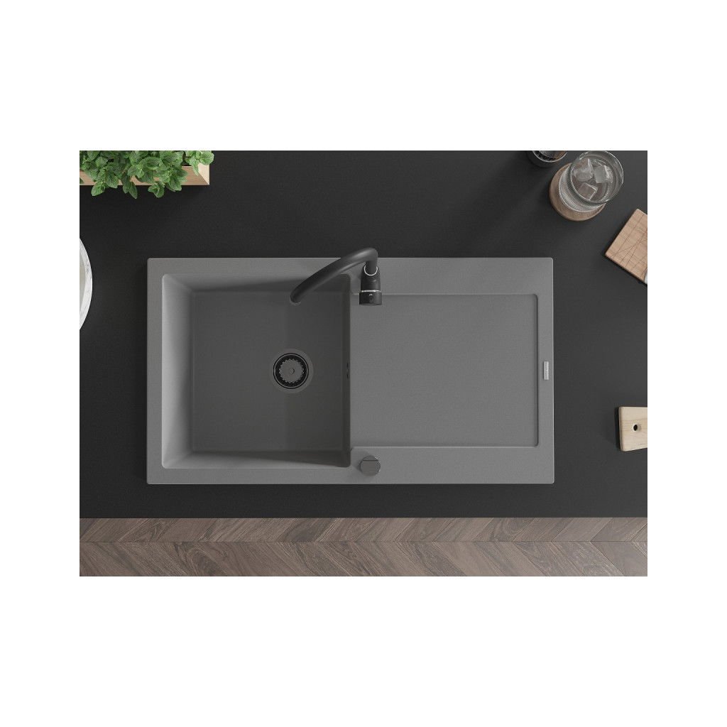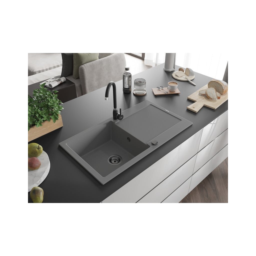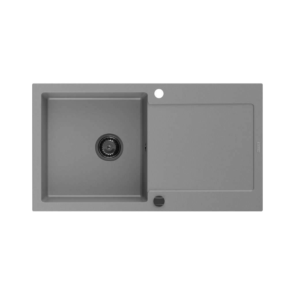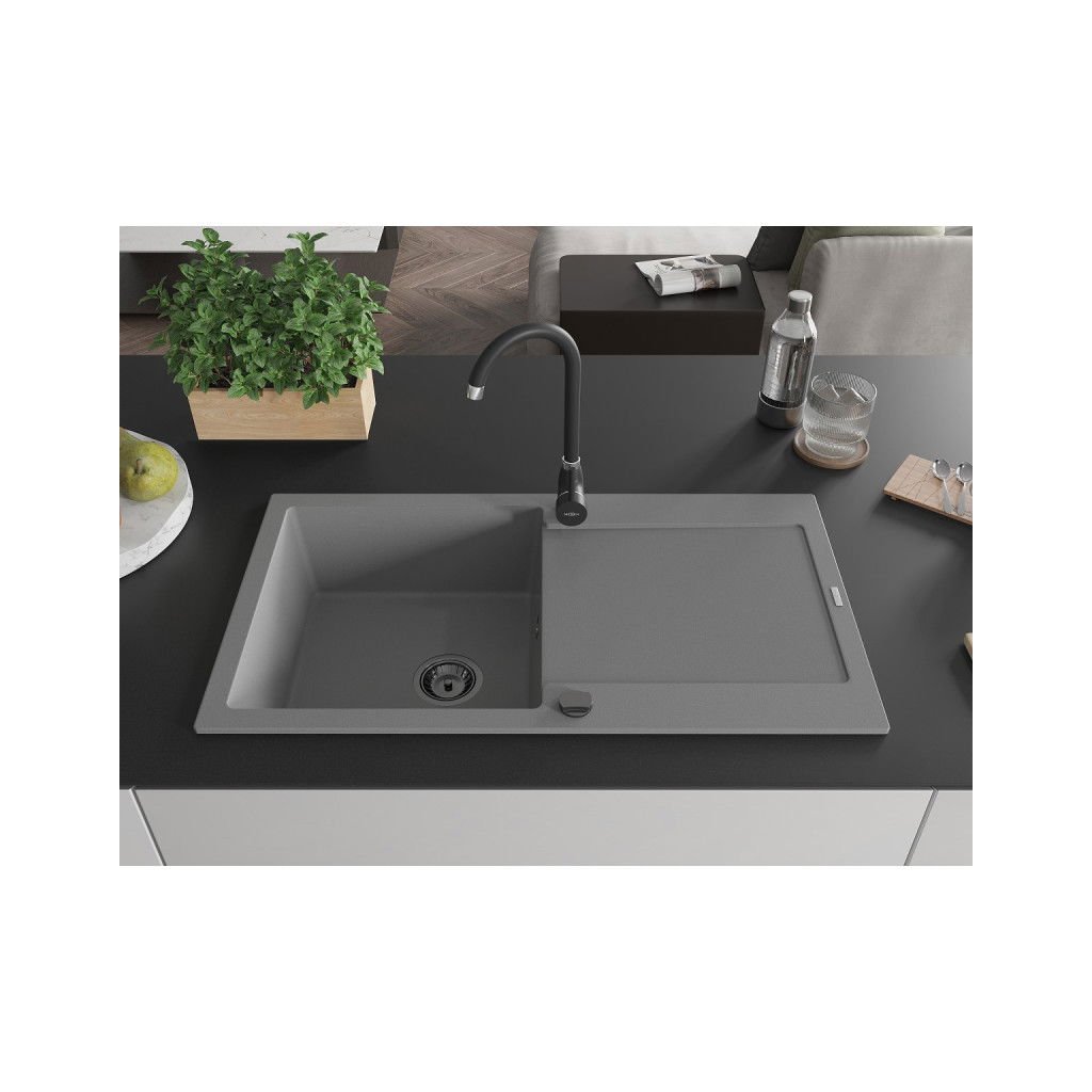 Mexen Leo, dřez granitový 900x500x190 mm, 1-komorový, šedá s černým sifonem, 6501901010-71-B