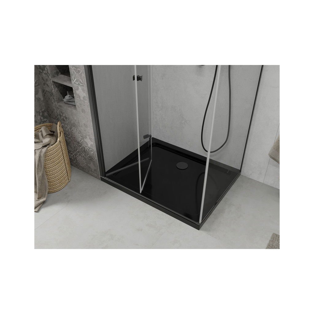 Mexen Lima, sprchový kout se skládacími dveřmi 100 (dveře) x 80 (stěna) cm, 6mm čiré sklo, černý profil + slim sprchová vanička černá s černým sifonem, 856-100-080-70-00-4070B